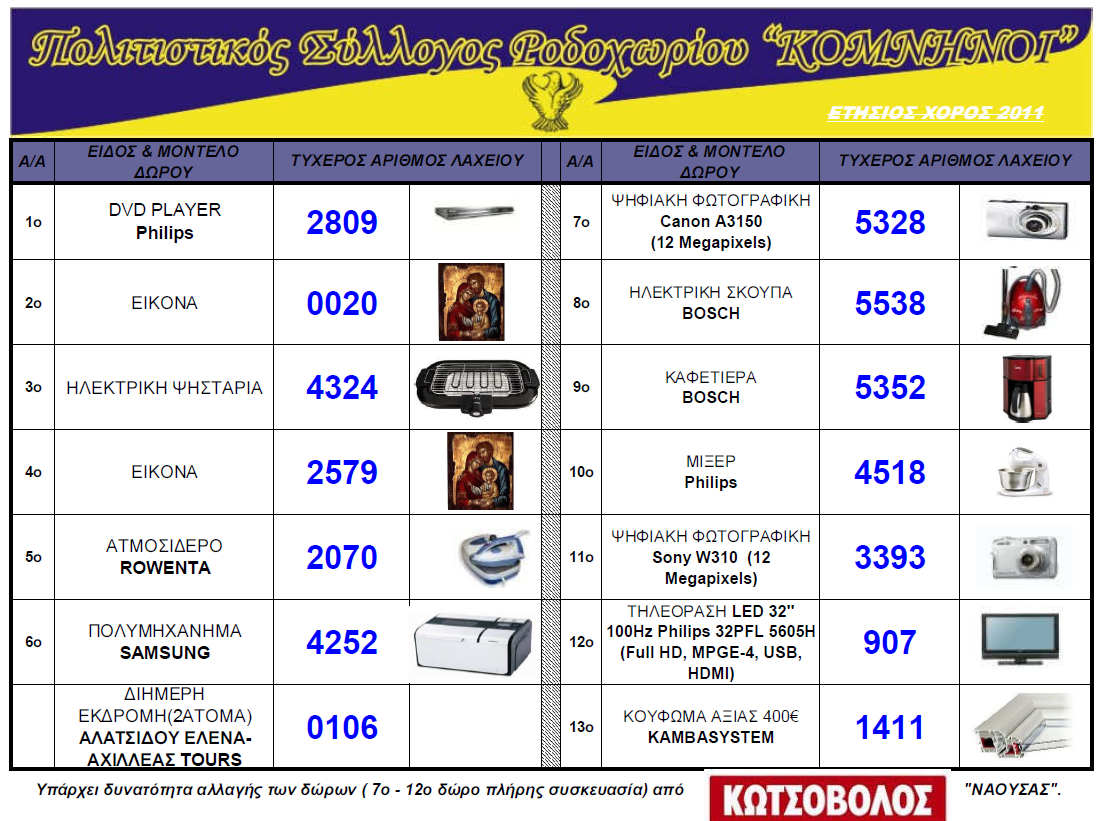Οι τυχεροί ας επικοινωνήσουν στο email του συλλόγου ή στο τηλέφωνο 6936897842