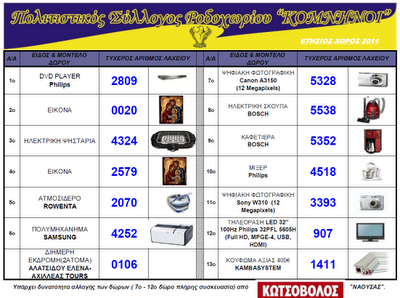 Τυχεροί αριθμοί από την λαχειοφόρο κλήρωση του συλλόγου